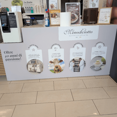 La nostra azienda è specializzata nella realizzazione di allestimenti commerciali su misura, seguendo ogni fase del processo: dalla creazione grafica alla stampa e applicazione dei materiali. Offriamo soluzioni personalizzate come insegne di grande impatto, PVC wall decorativi e pannellistica, studiati per valorizzare punti vendita ed ambienti professionali.
